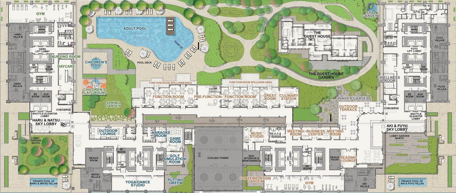 There is great reverence for nature and the changing of seasons that influence Japanese lifestyle and culture. The amenity floor of The Seasons Residences is inspired by the four seasons of Japan, with the arrangement of the elements being inspired by spring (haru), summer (natsu), autumn (aki), and winter (fuyu).